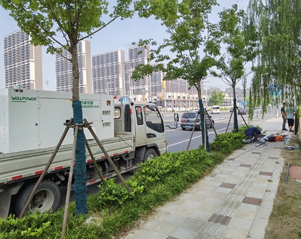 由于西部地區(qū)新建礦井大多處在比較偏僻的地方,地形復(fù)雜,交通不便,氣候條件惡劣,電網(wǎng)供電線路難以到達(dá),無法滿足施工要求,此時可以使用柴油發(fā)電機(jī)組供電,柴油發(fā)電機(jī)組可以整體安裝在基礎(chǔ)上,固定使用,也可以裝在拖車上,供移動使用。