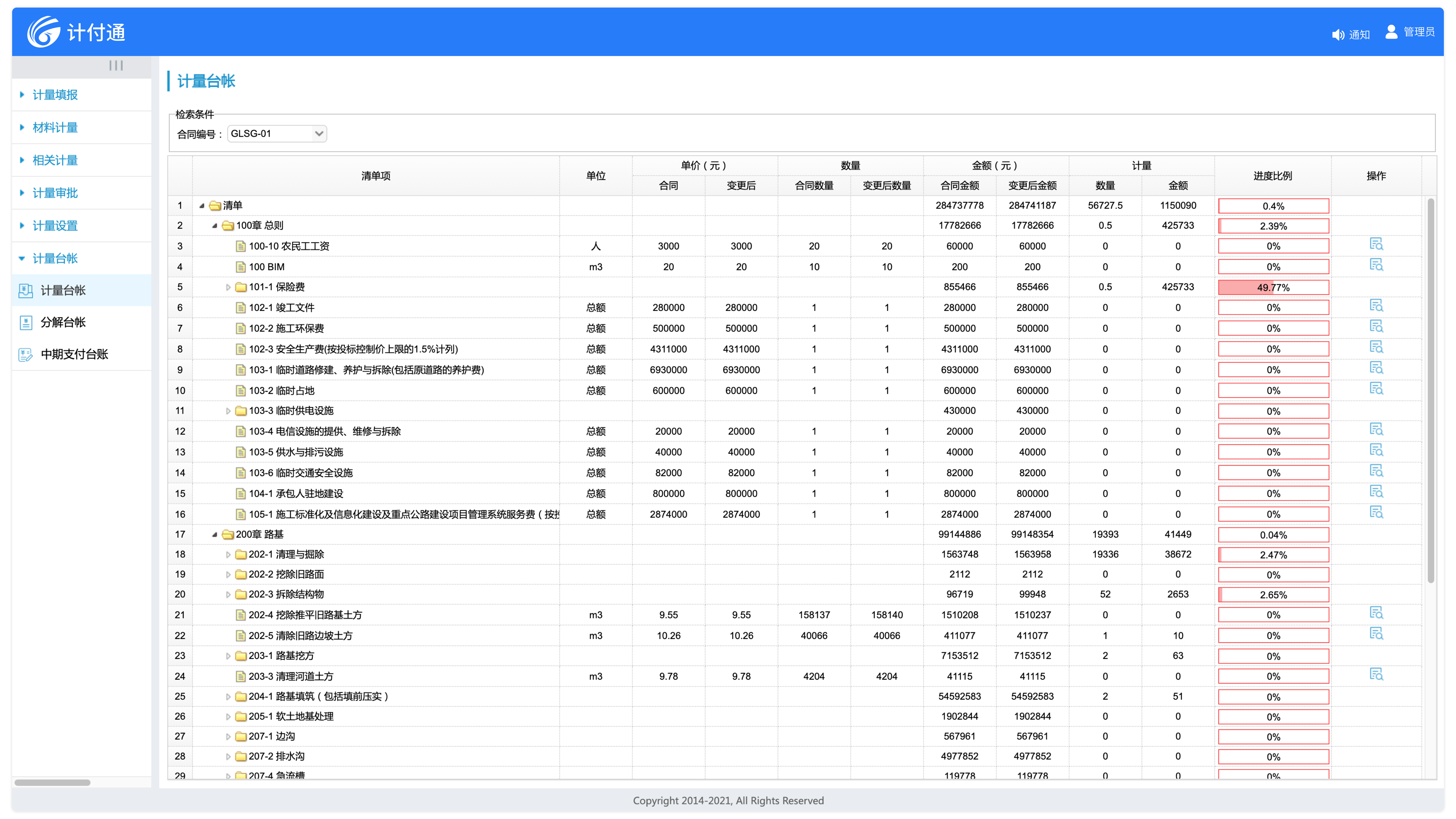 合同管理基本信息詳盡,約束條款中內(nèi)置各類計量依據(jù),是整個計量支付業(yè)務(wù)的源頭。