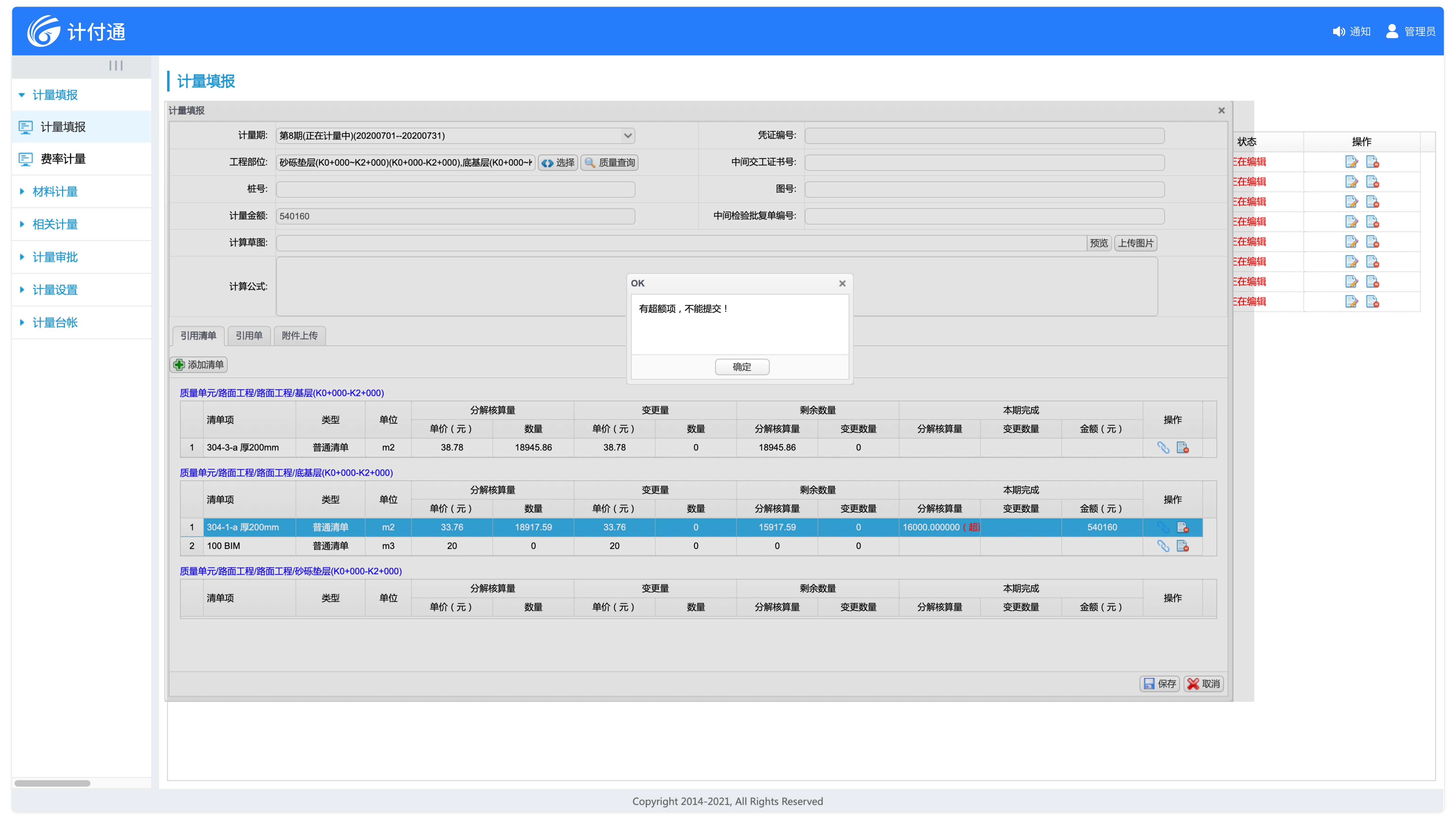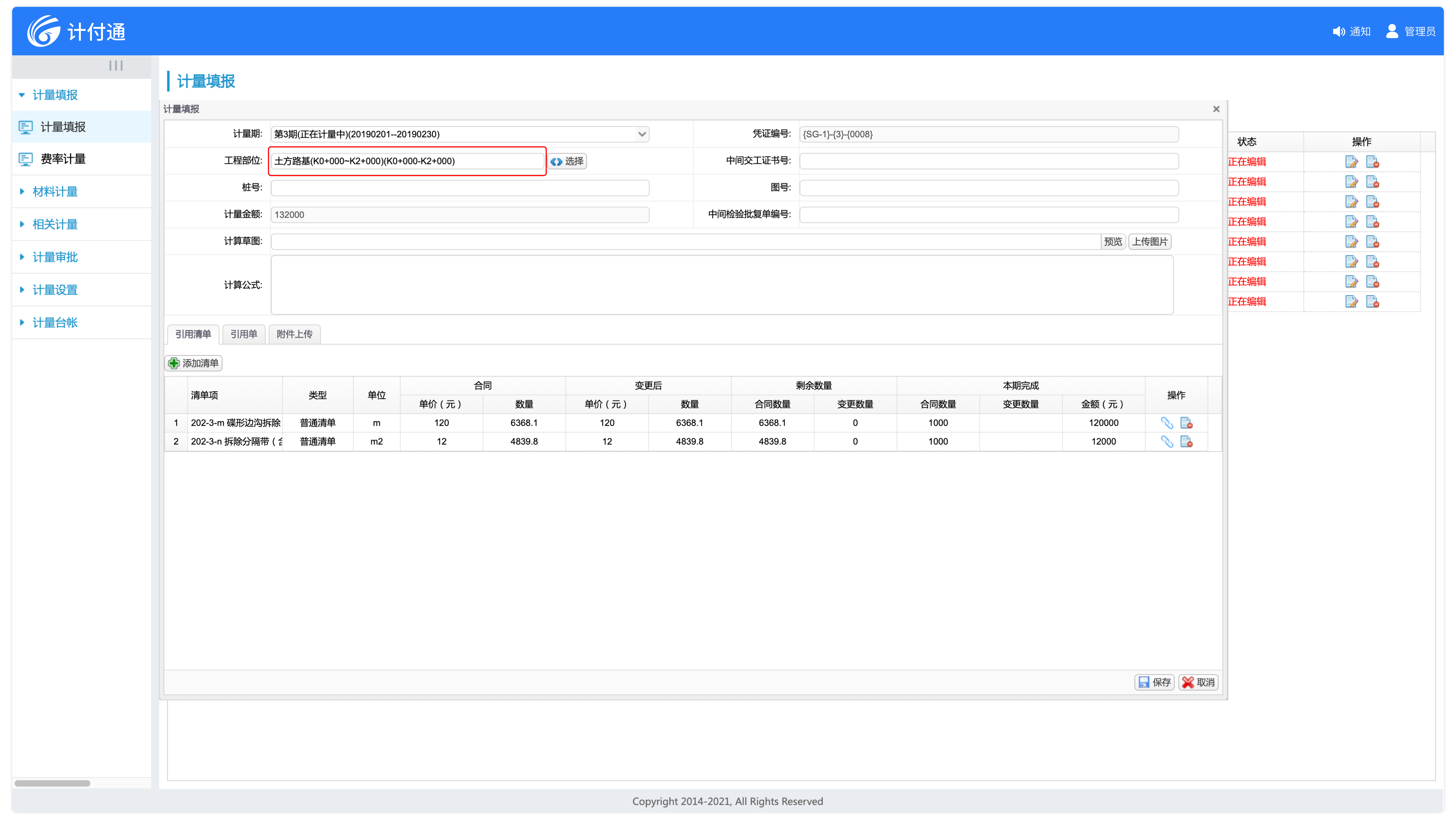 適應(yīng)多種計量模式,既支持按照合同清單總量進行計量,又能按照工程部位進行計量。